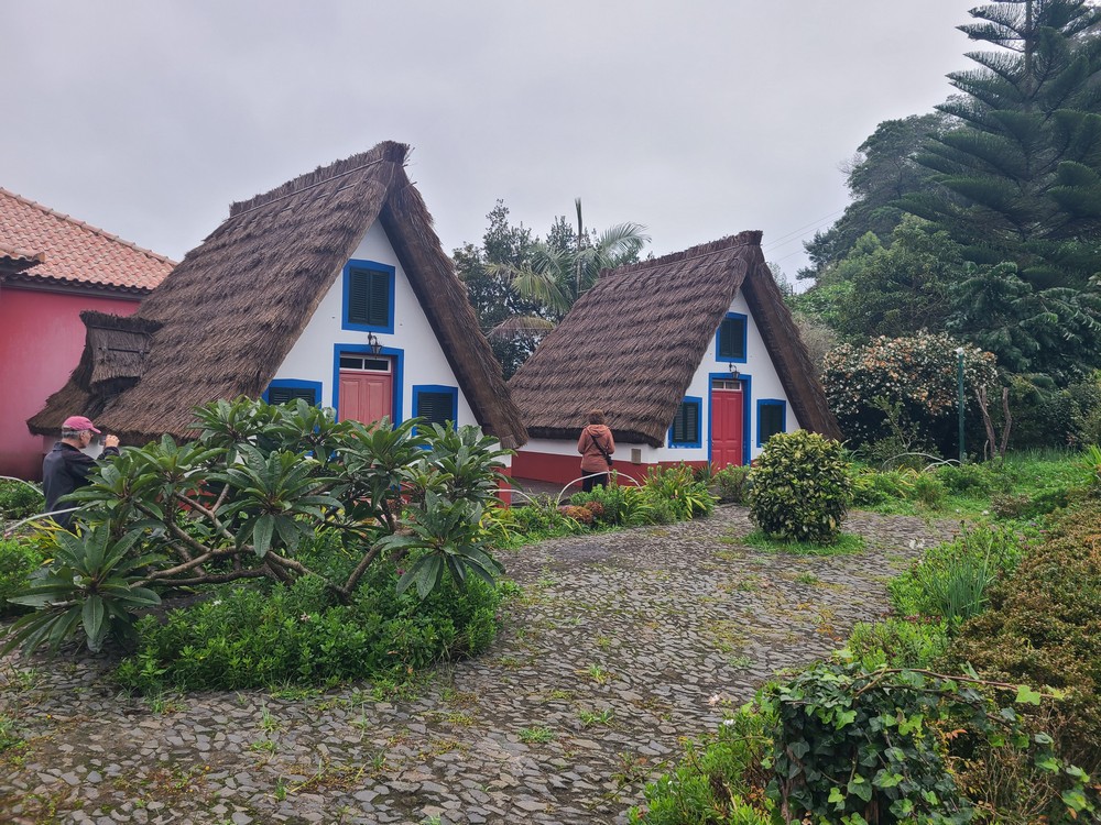 My friend and the other three members of our tour group assembled on Saturday for dinner at a nice Madeiran restaurant full of grilled meat on yard-long hanging skewers, Madeira’s famous Madeira sweet wine, and folk dancers in traditional garb. Sunday, Bruno, our tour guide took us around the east side of the island, first stopping in the pouring rain at a trout farm. It was there that I learned that my Star Wars Celebration Europe Return of the Jedi camouflage windbreaker was not waterproof. Luckily, at a stop at a rum factory, I was able to buy a decent rain slicker that magically drove away the rain for the rest of the day. We stopped at several cliffside “miradouros” or viewpoints, checking out seaside rock formations and waterfalls, and even spotted a surfer in a cove. A lunch stop in Santana introduced us to “espada” or black scabbardfish, a white fish often served with a banana or passionfruit sauce.
