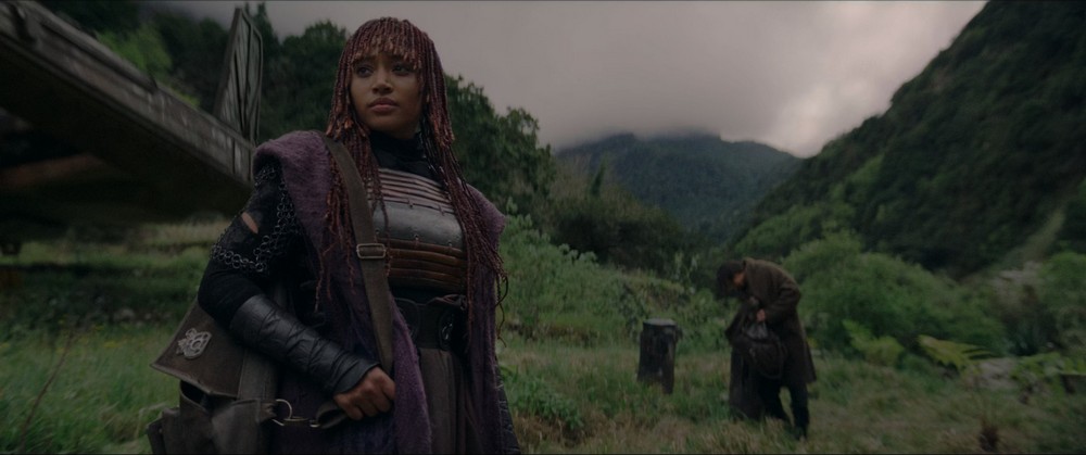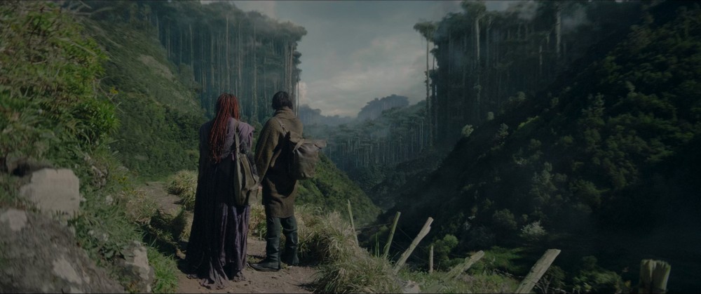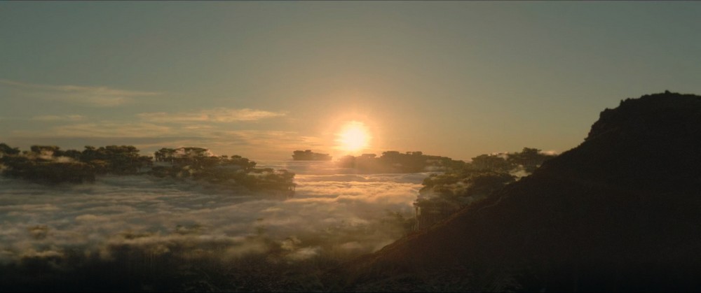 Thursday morning arrived with a forecast of clouds and rain for the highest parts of the island, including Pico do Areeiro (also sometimes spelled Arieiro). Pico do Areeiro is the third tallest mountain on Madeira, and popular with hikers, cyclists, and sunrise/sunset photographers. And the summit is easily reached by car, with a restaurant, gift shop, and giant Death Star-shaped radar station. We drove up, going from clouds above to clouds misting around us. Several key Khofar establishing shots for “Day” (the fourth episode of The Acolyte) were filmed by the second unit up here. From the lookout post on the peak, you could face northeast, and that’s the shot of the deep canyon a green mountain on the left with a closer mountain in shadow on the right. With the cloud cover, all I got to see was the outline of the mountain on the right.