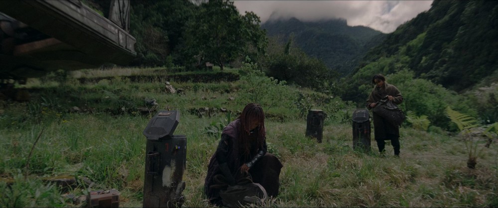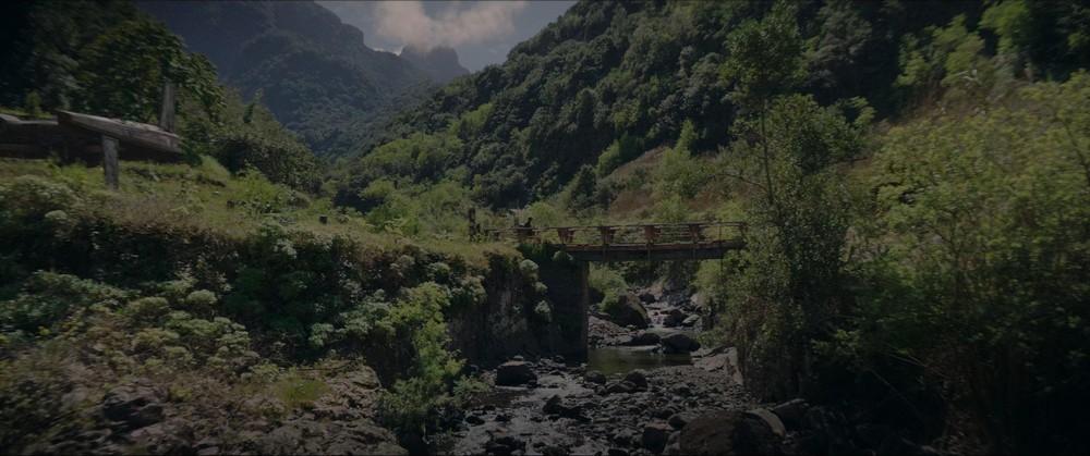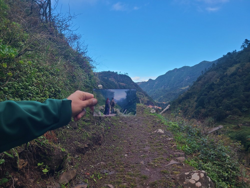 This is the most challenging The Acolyte shooting location to reach – for both the film crew and for the Madeira visitor. In the fourth episode (“Day”), Mae and the Stranger, posing as Qimir, land their ship, Eclipse II, on a small flat terrace, then pack up their gear, cross a bridge and hike along a trail on the side of a hill, and this is where it all was filmed. Poço das Casas (also called Poço dos Namorados “Lover’s Pool”) is a scenic waterfall near the hamlet of Falca in Boaventura. While we knew where the terrace and bridge were on the map, finding a way to get there was a challenge for us. Gerardo had told me that to bring all the filming equipment and props to the site, they devised an overhead cable car that would carry the gear from the roadway down a steep slope and across the stream to the terrace. Certainly a lot easier than having to hand carry all the way down the trail from street access farther away.