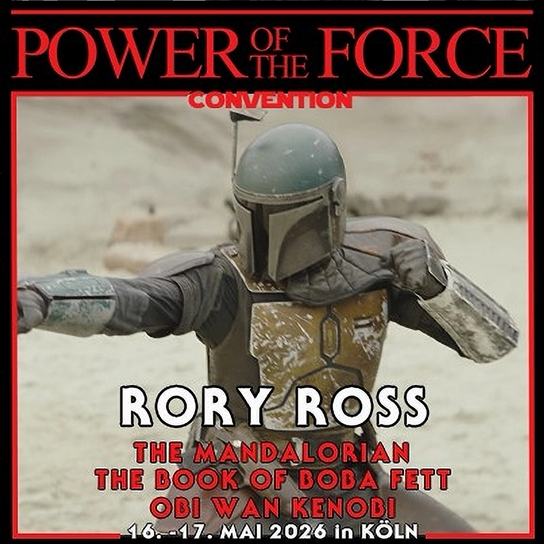 Power of the Force convention returns to Cologne over the weekend of 16th and 17th May 2026, and signing autographs, posing for photographs and discussing his roles in Obi-Wan Kenobi and The Mandalorian is Rory Ross. In the meantime you can read our reviews of the 2024 and 2025 events, and great news; Fantha Tracks will once again be there – this time in force – so we’ll see you in Germany.