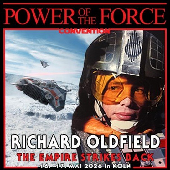Richard Oldfield is coming to the Power of the Force convention in Cologne over the weekend of 16th and 17th May 2026, signing autographs, posing for photographs and disussing his time as snowspeeder pilot Hobbie Klivian in The Empire Strikes Back. In the meantime you can read our reviews of the 2024 and 2025 events, and great news; Fantha Tracks will once again be there – this time in force – so we’ll see you in Germany.