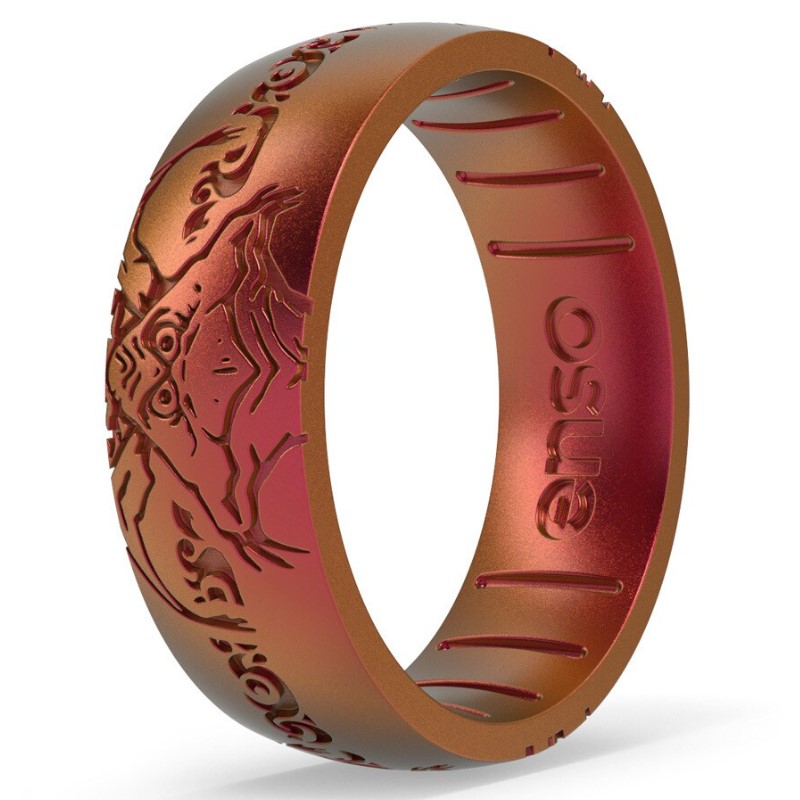 This ring is intricately etched in the color Poseidon, an iridescent copper with gold undertones.