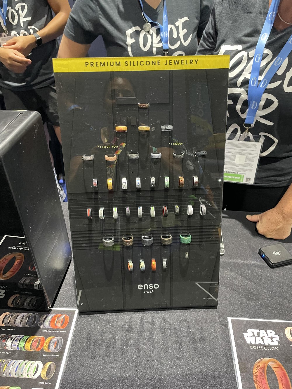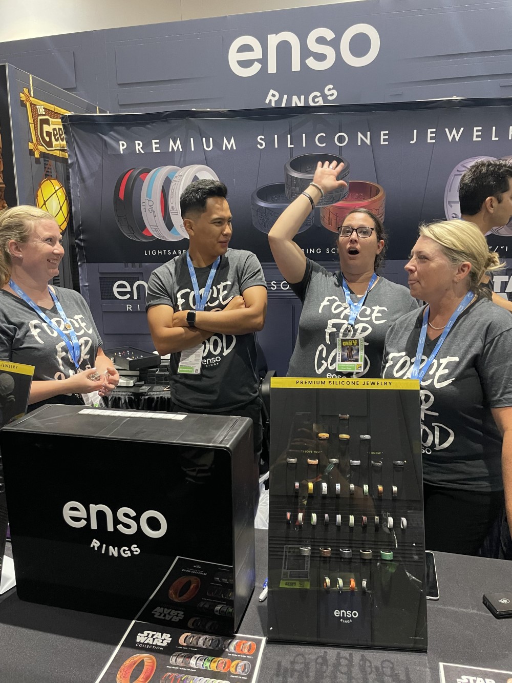 Like most innovations the idea for Enso rings came from a realization. The founder of the company nearly injured his finger when his metal ring caught on a rock. The innovation of the brands silicone rings with unique styles and unisex sizing made them very popular. When the brand attained the Lucasfilm license they began producing a variety of fan favorite characters.