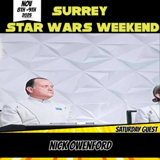 Smugglers Surrey Star Wars Weekend take place over the weekend of Saturday 8th and Sunday 9th November 2025, and visitors to the Weybridge Campus of Brooklands Technical College on Heath Road, Weybridge will have the chance to meet a Troop transporter of Imperial officers and rebel heroes. Added to the guestlist for Saturday is Eugene Lin (Imperial security trooper in Andor) who joins Ben Bailey Smith (ISB Supervisor Blevin in Andor season 1), Jonjo O’Neill (Captain Kaido in Andor season 2), Alistair Mackenzie (Perrin Fertha in Andor), Pierro Niel-Mee (Erskin Semaj in Andor season 2), Jacob James Beswick (ISB Agent Heert in Andor), Nick Owenford (ISB Supervisor), Michael Jenn (Supervisor Lagret), Jonathan Rhodes (Reporter #1), Anton Lesser (Major Partagaz in Andor), Robert Emms (Lonni Yung in Andor), Wilf Scolding (Vanis Tigo in Andor season 1) and Louis Martin (Sergeant Benz in Andor season 2) at the show.