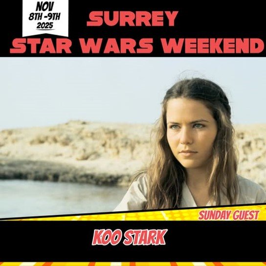 Smugglers Surrey Star Wars Weekend take place over the weekend of Saturday 8th and Sunday 9th November 2025, and visitors to the Weybridge Campus of Brooklands Technical College on Heath Road, Weybridge will have the chance to meet a Troop transporter of Imperial officers and rebel heroes. Added to the guestlist for Sunday is Koo Stark, Camie Marstrap in A New Hope, who joins Dermot Crowley (General Madine in Return of the Jedi), Hugh Spight (Gamorrean Guard and Prune Face in Return of the Jedi), Marti Matulis (Vane in The Mandalorian and Skeleton Crew), Mike Edmonds (Logray in Return of the Jedi), Alistair Petrie (General Draven in Rogue One and Andor season 2), Eileen Roberts (Mosep Bineed in A New Hope), Laurie Goode (Saurin in A New Hope), Paul Warren (Varmik in The Force Awakens) David Stone (various Original Trilogy characters), Chris Bunn (Stormtrooper in the Original trilogy), Michael Carter (Bib Fortuna in Return of the Jedi), Brian Herring (BB-8 in the Sequel Trilogy), John Simpkin (Klaatu in Return of the Jedi), Trevor Butterfield (Lieutenant Blount in Return of the Jedi) and Damon Driver (Biker Cop in Solo: A Star Wars Story).