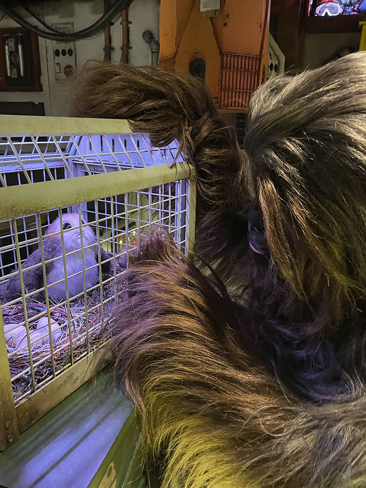 Eagle-eyed guests will notice small details like a hidden porg nest, which can mean only one thing: creatures are definitely loose aboard this ship. While those creatures are ready to be studied, others lie in wait and are not as easily found. A nondescript pipe isn’t just room decor; a simple spin of the attached valve and ominous bubbles appear… signifying the fearsome dianoga is not far behind! Luckily, a thick wall of glass pipe separates you from the elusive beast.