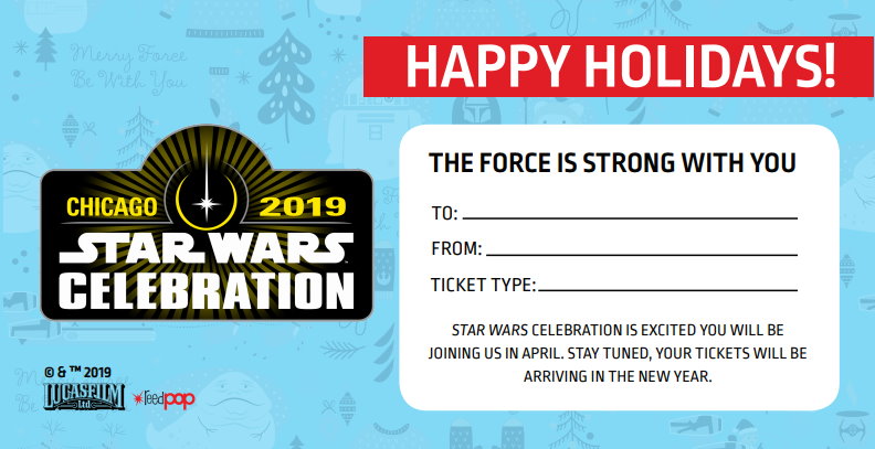 The holidays are back again, and it’s time to give a gift that will make the Jedi Master or Sith Lord in your life smile. Give the gift of the ultimate Star Wars Fan experience by giving your loved ones a ticket to Star Wars Celebration Chicago in 2019.
