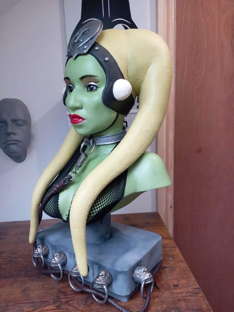 In celebration of the 40th anniversary of Return of the Jedi and in honour of the actress Femi Taylor Ian Isherwood has created a bust of Oola, Jabba’s slave girl. The bust has now been modeled, printed, moulded and cast in PU resin.
