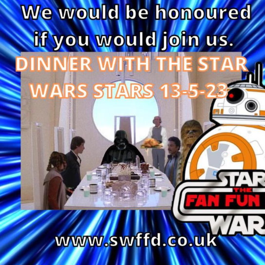 Star Wars Fan Fun Day returns to Ewood Park in Blackburn on Sunday 14th May and the night before will see the return of Dinner With The Star Wars Stars, a night of fun, entertainment, fundraising and general awesomeness that you simple need to be at. Tickets are on sale now for £55.00 for a first-class meal and evenings enjoyment but be aware, those tickets will go fast.