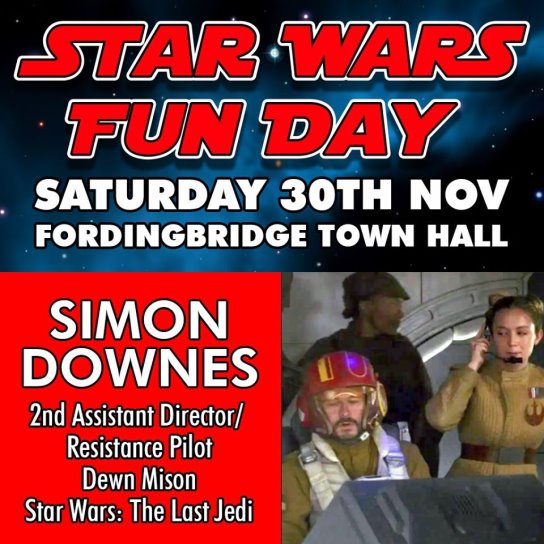 Star Wars Fun Day – also known as Fantha Day – takes place on the 30th November, the day before Farthest From 21 and the event brings to Fordingbridge Simon Downes, the 2nd Assistant Director of The Last Jedi who also appeared onscreen as Resistance pilot Dewn Mison.