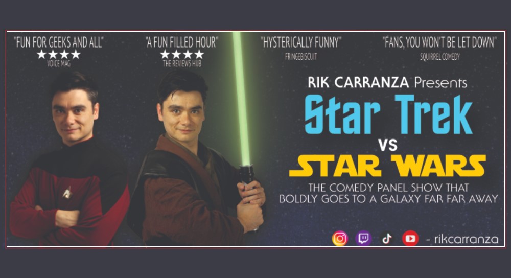 Join host Rik Carranza as comedians battle it out to discover which is the best franchise, Star Trek or Star Wars, the ultimate clash of fandoms. A regular fixture at the Edinburgh Fringe, comedy clubs and conventions around the UK, the show is ‘a fun-filled hour’ TheReviewsHub.com where guests fight for the honour of their favourite franchise.
