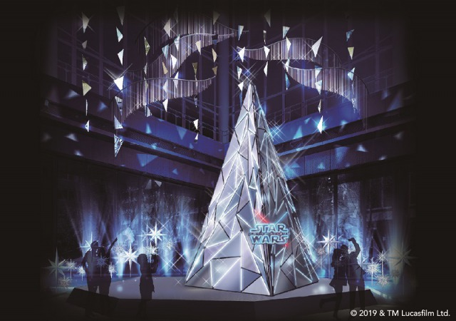 The Rise Crystal Christmas tree (which sort of looks like a Star Destroyer) will be on display at the Maru Building’s Maru Cube plaza, with alternating Light Side and Dark Side illuminations.