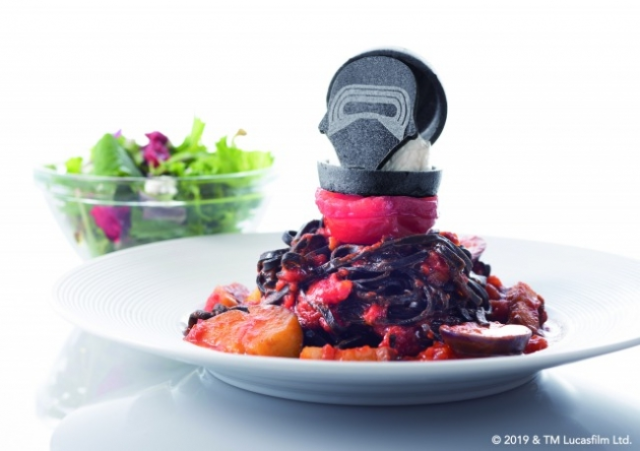 Star Wars Marunouchi Bright Christmas won’t just give fans things to look at, though, but also things to eat, with a limited-time Rise Crystal Cafe (taking up residence at the Maru Building’s Marunouchi Cafe) serving a lineup of Star Wars-themed food, like this Dark Side-infused Kylo Ren pasta.