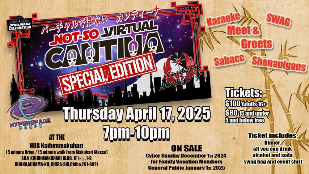Great news for a Saturday night as our pals from the Virtual Cantina network announce their event for Star Wars Celebration Japan, the Not So Virtual Cantina Special Edition – SWCJ 2025 and because it wouldn’t be a Celebration without them, it’s a very welcome announcement.