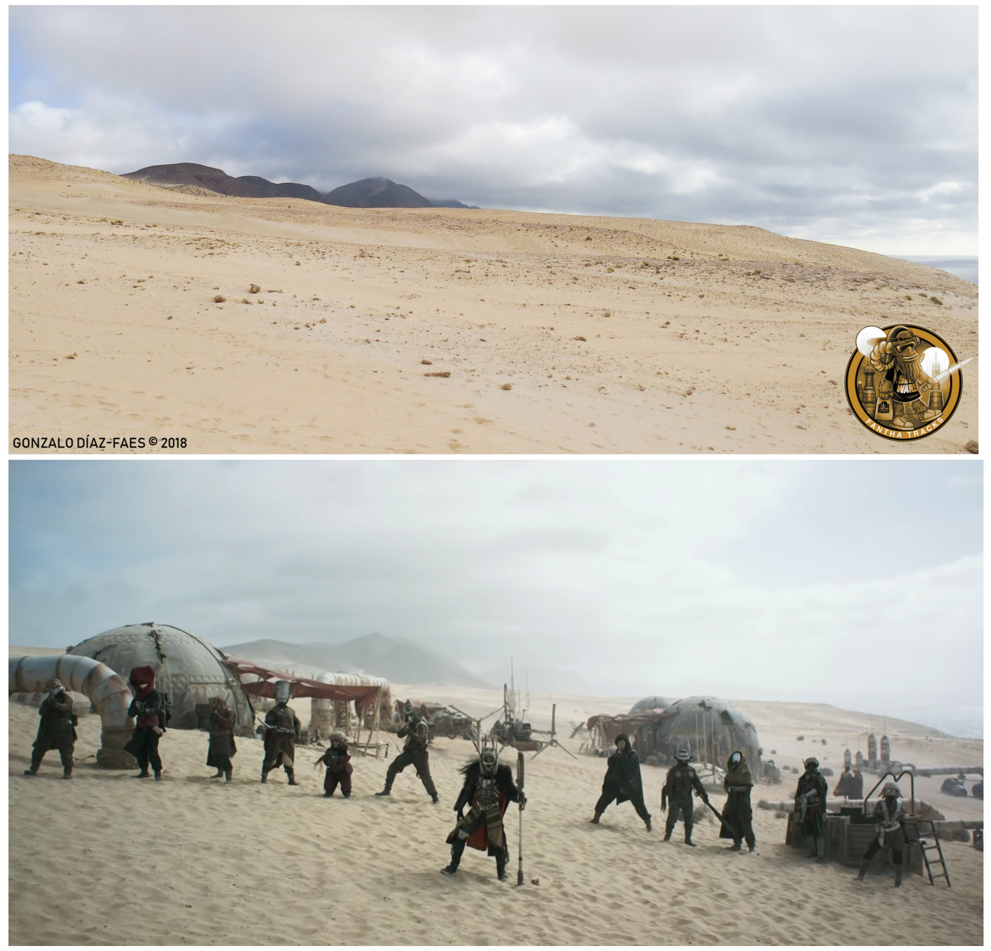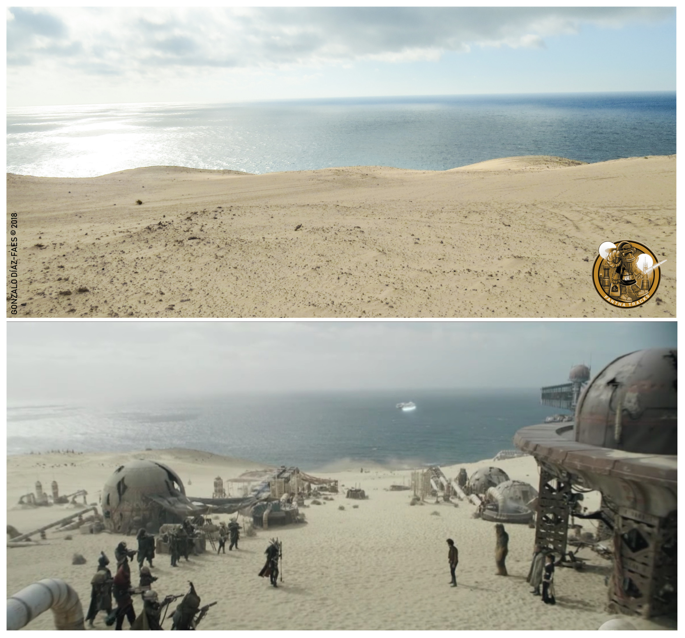 Lucasfilm’s film commission shot the exterior scenes of the planet on the island between May and June 2017, with the participation of 250 crew members and over 300 extras. The chosen location was that of the golden sands of Cañada de la Barca, in Jandia Natural Park, right by the cliffs that separate it from the Atlantic Ocean. A 4×4 vehicle is required and some areas are restricted to the public, therefore, it’s not easy to get there without knowing exactly where the movie was shot. I conversed with a number of people who participated directly or indirectly in the production and they confirmed the secrecy that surrounded it all, and which continues to this day. The Spanish companies and persons involved in the production had to sign a confidentiality agreement committing not to disclose the whereabouts of the set.