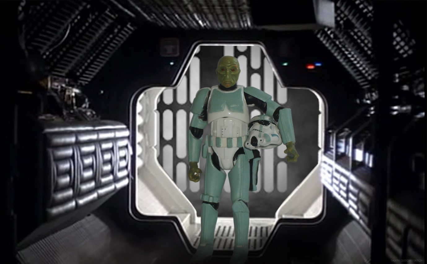Drawing inspiration from another of Dark Horses Comic packs 30 #4, this time Luke Skywalker in Stormtrooper disguise (comic painted style), Mouse was painted with acrylic matt colouring but with a design which sympathetically repaired the pen damage and provided this Duros with his own unique uniform.