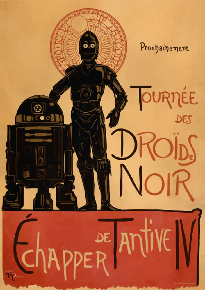 From the team at Dark Ink Art and artist Oliver Wetter, this is Droides Noir, limited to 295 hand-numbered lithographs and featuring our two heroic droids Artoo and Threepio in a very unique portrayal.