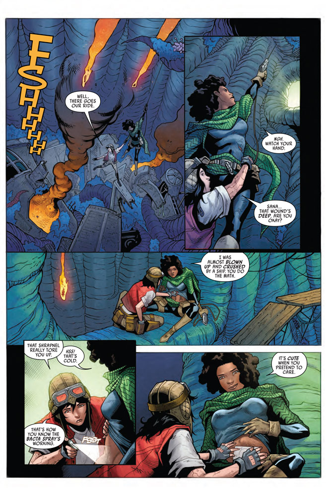 The quest for a Nihil Hyperdrive nearly costs Doctor Aphra and her partner-in-crime Sana Starros their lives. But it’ll take more than almost being blown up and crushed by a spaceship to slow these two down.