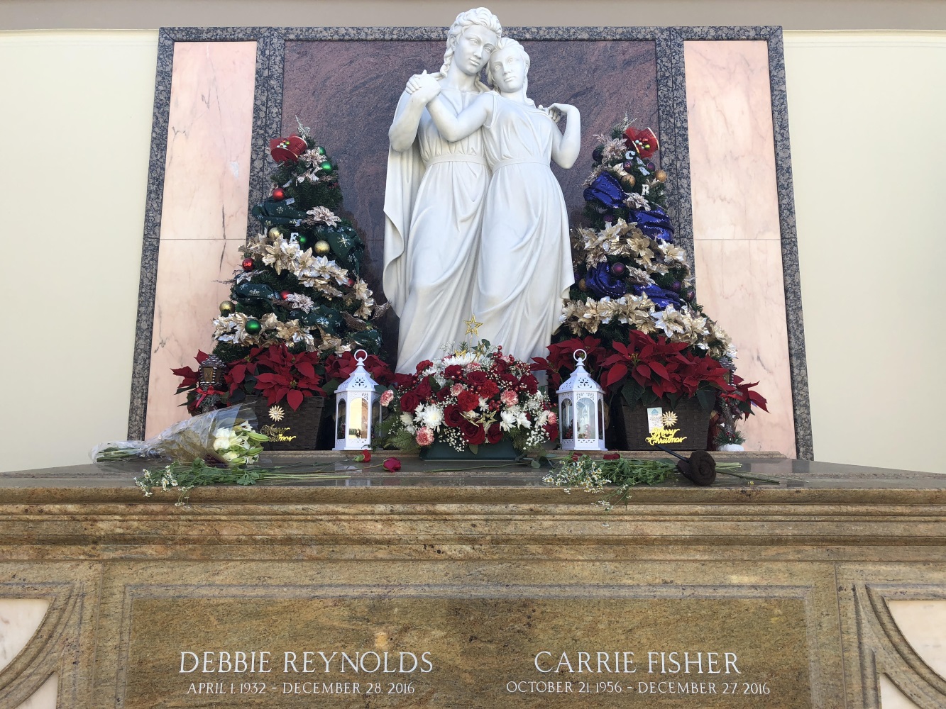 As I type these words I can hear Carrie speaking to me both figuratively and literally. I’m sat in front of Debbie Reynolds and Carrie Fisher’s memorial site at Forest Lawn, Hollywood Hills, right now listening to The Princess Diarist audiobook.