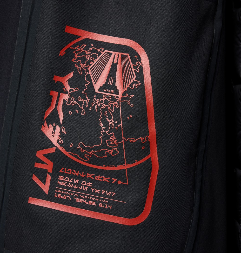 The Vader™ Collection leverages the character’s powerful dark color palette showcasing a Vader-inspired combination of matte and shine materials, elaborate technical layers, and unmistakable silhouette. In addition to weather-resistant outerwear and sportswear, the collection includes detailed footwear, youth pieces, and several accessories. Secret messages in Aurebesh, a written language in the Star Wars galaxy, and other surprises are woven throughout.