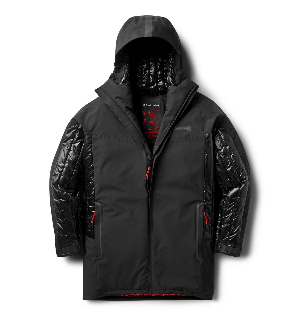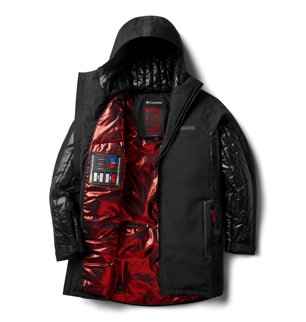 Vaderâ„¢ 3L Interchange Jacket (MSRP $600) – A special-edition 3-in-1 jacket inspired by Darth Vader and built to master the elements with a durable triple-layer waterproof-breathable shell and inner down layer that can be worn separately or together. Star Wars-inspired features include a custom red and black Omni-Heatâ„¢ Infinity lining, graphic print inspired by Vader’s home planet of Mustafar, messages in Aurebesh, lightsaberâ„¢ zipper pulls, reflective detailing, and construction inspired by Vader’s helmet, armor, and chest plate.