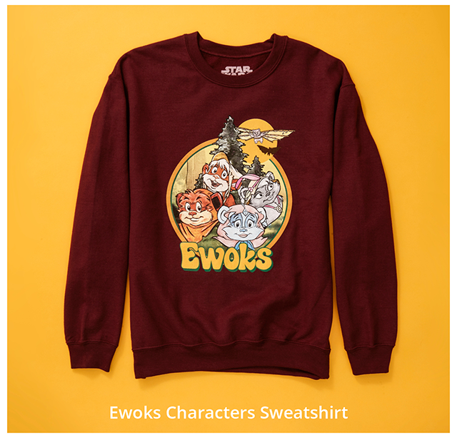 Hang out with your new fuzzy friends with this burgundy sweatshirt from the animated Star Wars series, Ewoks.