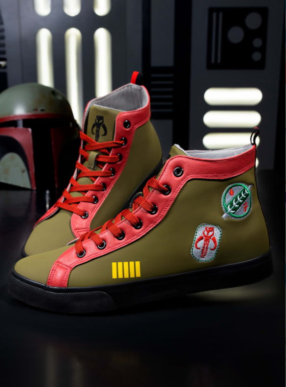 Via the team at FUN.com, check out these new Boba Fett Unisex High-Top Shoes, bringing the skills of the legendary bounty hunter from the GFFA to a floor near you. Retailing for $49.99, it might take a couple of decent bounties to cover them, but well worth the effort.