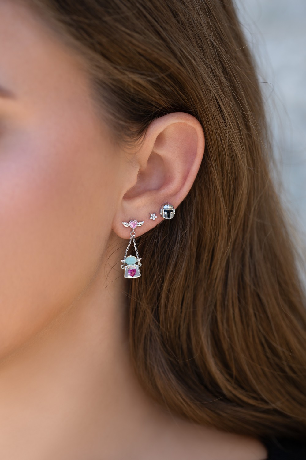 First off the Girls Crew Star Wars Grogu Cupid Basket Dangle Earrings.