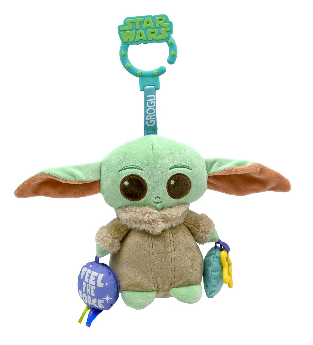 Here we have the Grogu deluxe soft book, the Grogu Full Body on-the-go activity toy, Grogu my first snuggle buddy, and The Mandalorian blanket with Crinkle Grogu on Teether Ring.