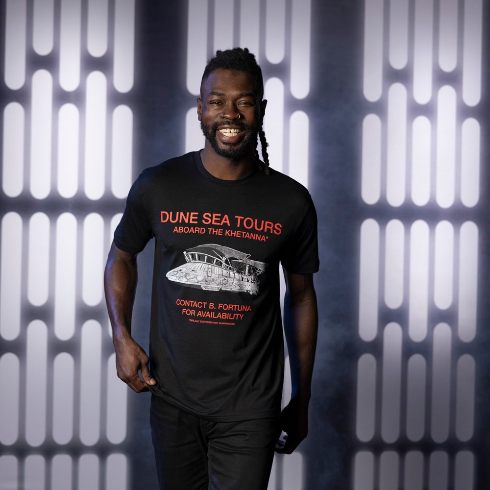 The collection includes a wide array of Star Wars designs and formats, available in our classic (unisex) styles/sizing. The collection also includes our first-ever Limited-Edition Varsity Jacket that comes individually numbered. There are a total of 421 available.