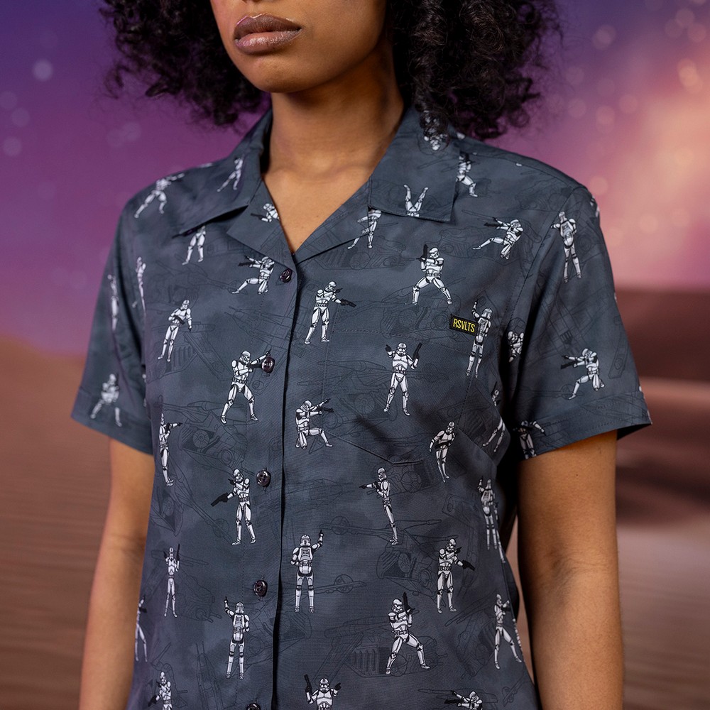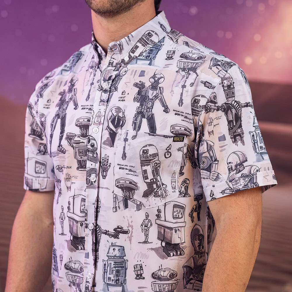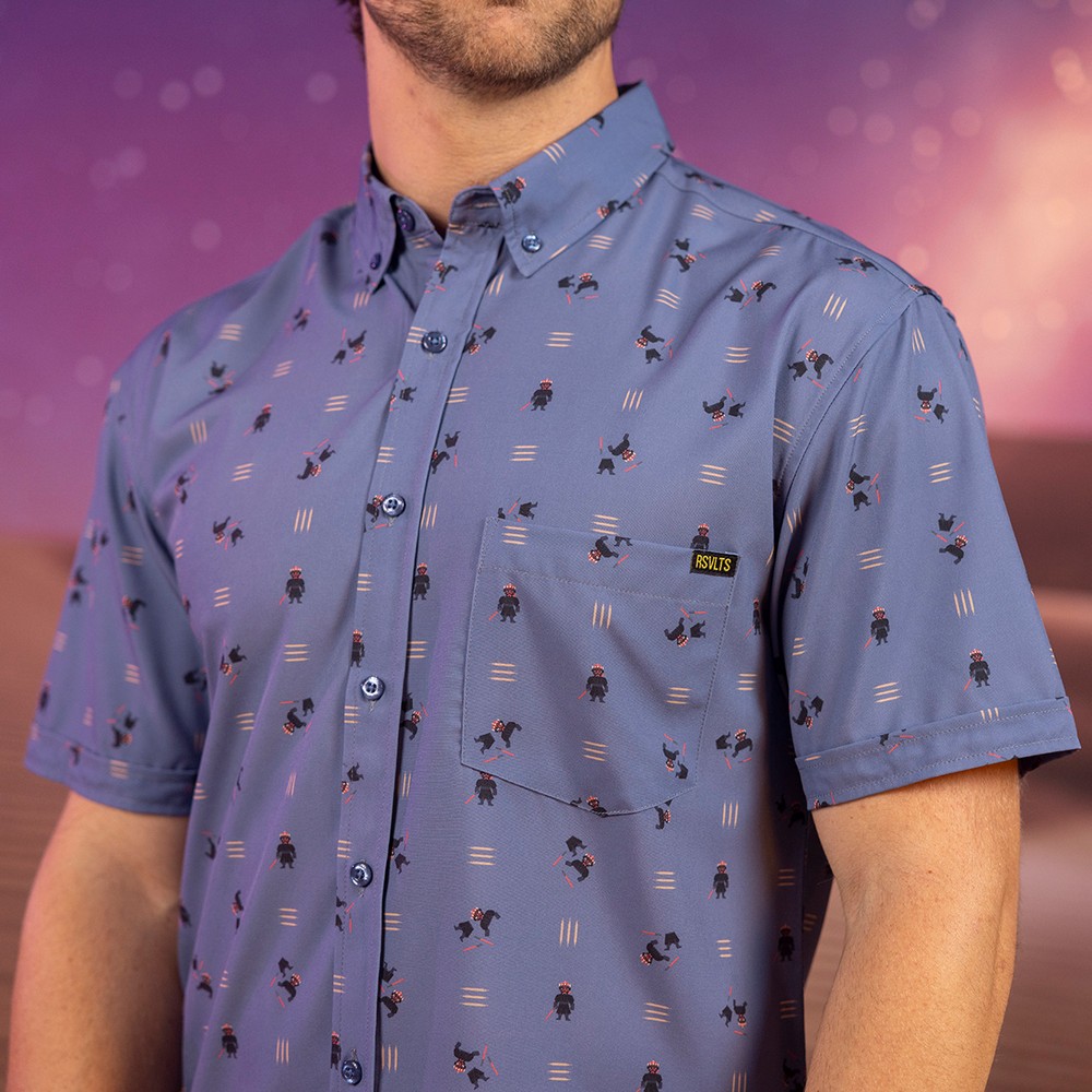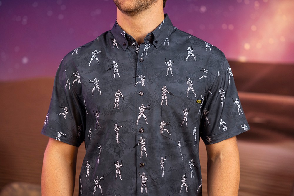 Check out the most comprehensive RSVLTS collection ever, with all designs available on RSVLTS signature KUNUFLEX in classic and women’s styles and sizings, as well as select designs across youth and preschooler sizes and styles, All-Day polos, quarter-zips, t-shirts, hybrid shorts and Kunu Koolers this is set to be the most stylish May the 4th yet. Each adult button-down shirt retails for $70, $45 for youth, $39 for preschool, $70 for polos, $65 for hybrid shorts, $32 for t-shirts, $75 for quarter-zips and $6 for Kunu Koolers. Now, on to the important stuff, a look at todays selection.