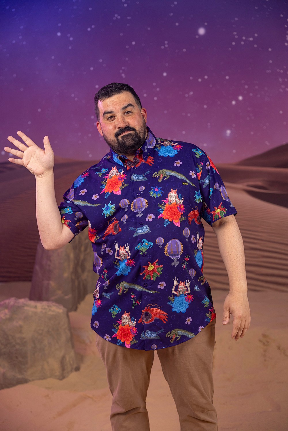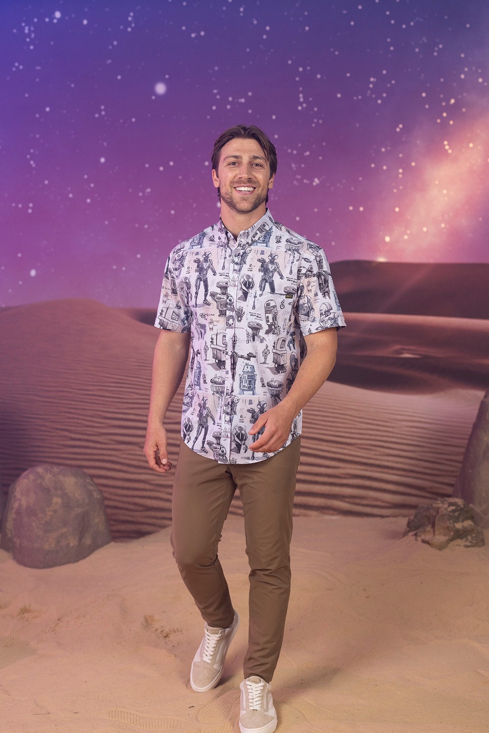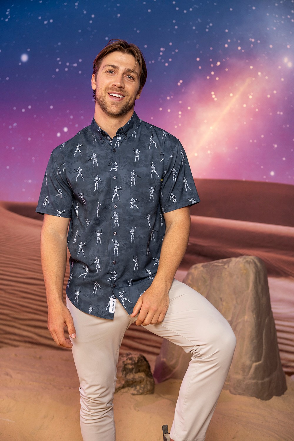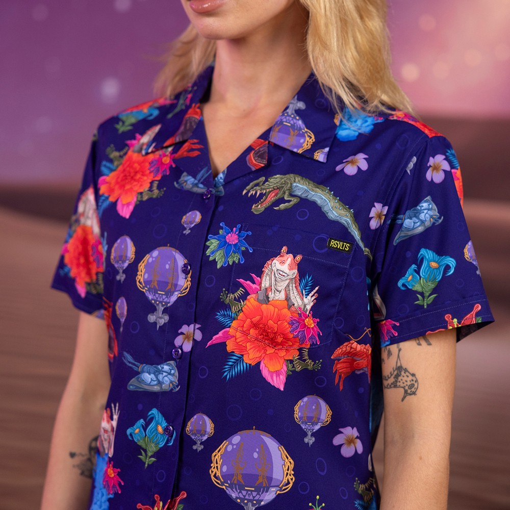 Check out the most comprehensive RSVLTS collection ever, with all designs available on RSVLTS signature KUNUFLEX in classic and women’s styles and sizings, as well as select designs across youth and preschooler sizes and styles, All-Day polos, quarter-zips, t-shirts, hybrid shorts and Kunu Koolers this is set to be the most stylish May the 4th yet. Each adult button-down shirt retails for $70, $45 for youth, $39 for preschool, $70 for polos, $65 for hybrid shorts, $32 for t-shirts, $75 for quarter-zips and $6 for Kunu Koolers. Now, on to the important stuff, a look at todays selection.