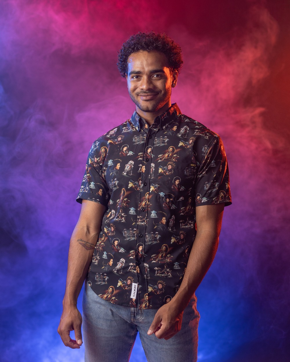 Featuring Peli Motto’s iconic coat and hairstyle, catch the engineer-turned-babysitter with her gang of droids and, yes, even Grogu, on this soft and stretchy Kunuflex™ button-down.