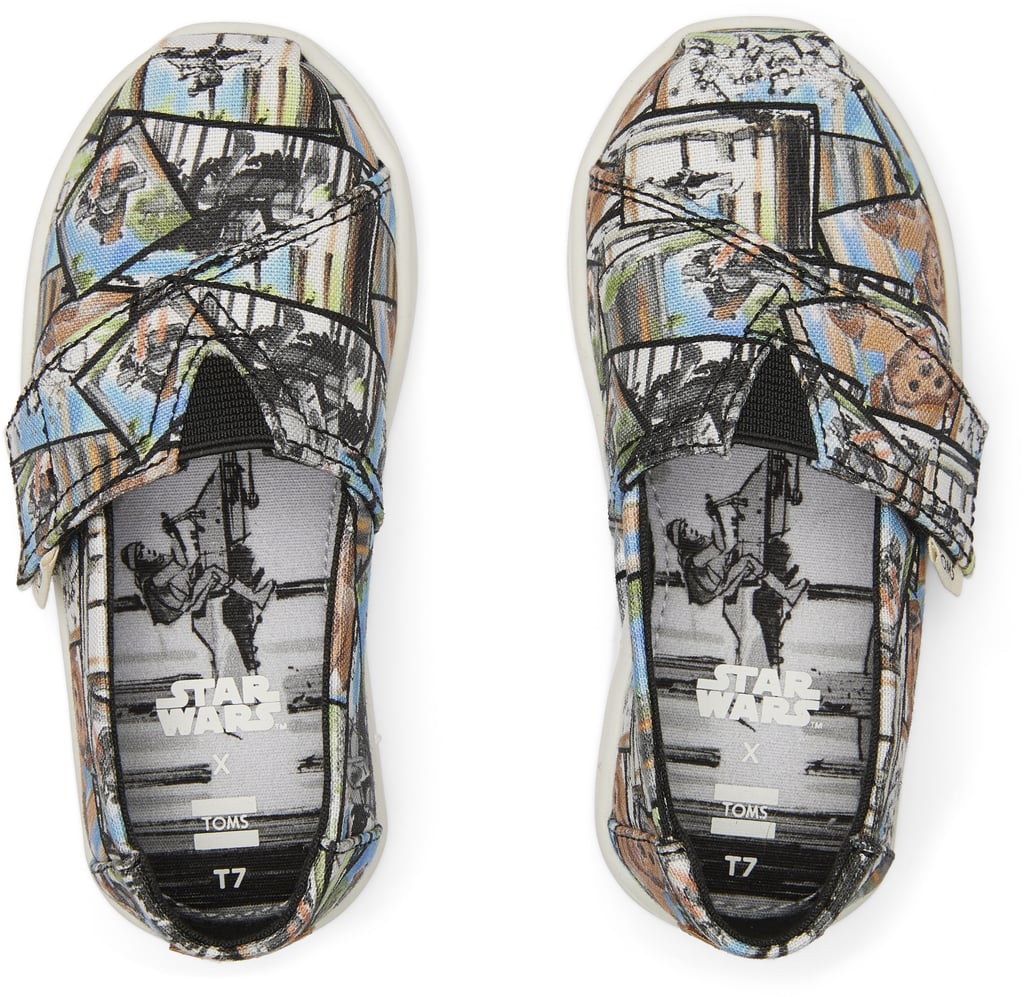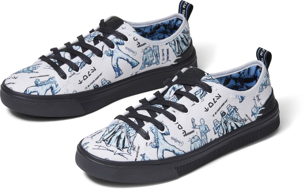 Nathan Photavath: From the start, we thought about, “How do we make our collaboration different from others in the past by building on what is unique to both parties?” The TOMS brand started off with one iconic shoe, the Alpargata, and pioneered the One for One model. For every shoe we sold, we gave another to a child in need. We wanted to merge the idea of where it all started in the first drop to build the foundation of the collection and partnership. Hence, focusing the collection on the classic saga. After touring the Lucasfilm office, I was immediately inspired by the film’s original storyboard concept art and images floating around the building. Diving deeper into each film from the original trilogy, I thought about which landscapes and scenes really stood out as being iconic, and to top it off, these were almost like flashbacks of my earliest memories from the films.