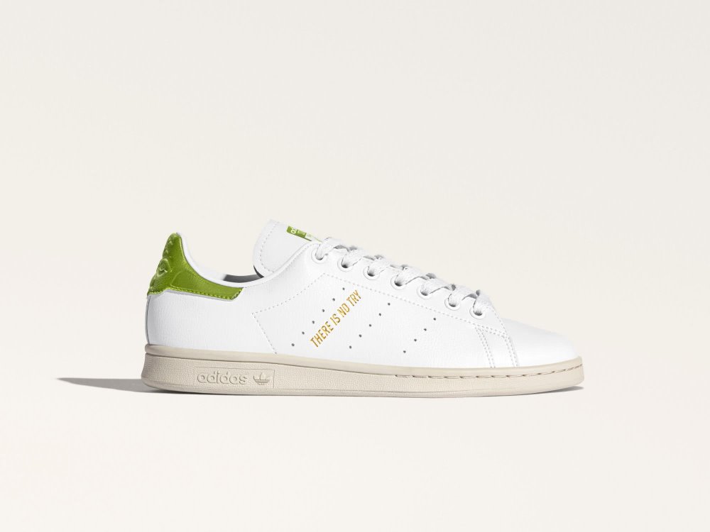 The custom design reimagines the classic Stan Smith footwear with Star Wars Yoda and tennis player Stan Smith-inspired graphics on the tongue. The silhouette also receives a recycled rubber outsole that reinforces the brand’s larger sustainable initiative. Unique to his character, the sneaker features the Jedi Master’s famous words of wisdom, “THERE IS NO TRY” and “DO OR DO NOT,” alongside Yoda’s recognizable face embossed on the heel tabs. The Adidas Originals Stan Smith silhouette inspired by Yoda from the Star Wars galaxy will launch on May 5 via adidas.com/stansmith and in select stores worldwide.