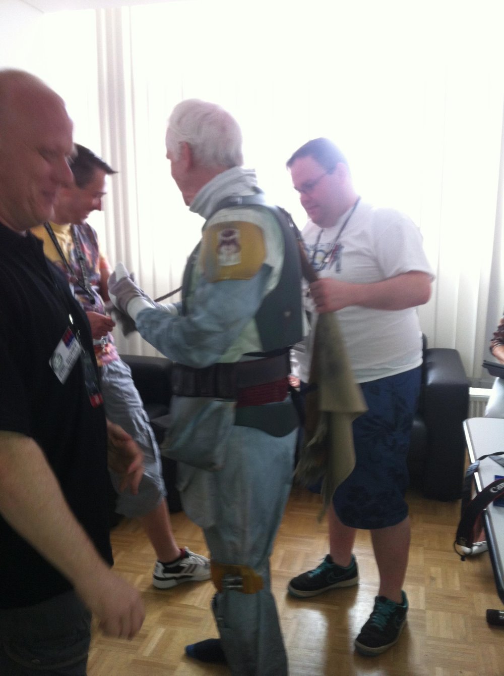 Disney Plus Day will be with us in just over 3 weeks time on the 12th November, and the new teaser for the big day brings us some clips from Under The Helmet: The Legacy of Boba Fett, which includes a clip of the late and much-missed Jeremy Bulloch at Celebration Europe 2 in his armour. On that day back in 2013, as he had just a few days earlier at Toys R Us before our 6-day Caravan of the Force trip set off to Essen with Dave Tree, James Burns and Mark Newbold, Fett fanatic Matt Booker helped Jeremy get his armour on.