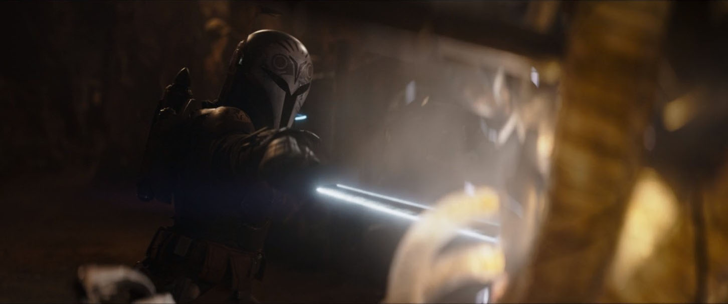 Perhaps it isn’t a total coincidence that my least favorite episode of the season also didn’t do much for me as far as visuals. On paper, Bo-Katan igniting the Darksaber would have been the ideal choice but the backdrop just looked way too much like my neighborhood park. The super battle droid chase scene came across as slightly goofy to me, but it did end in a fairly interesting overhead shot.
