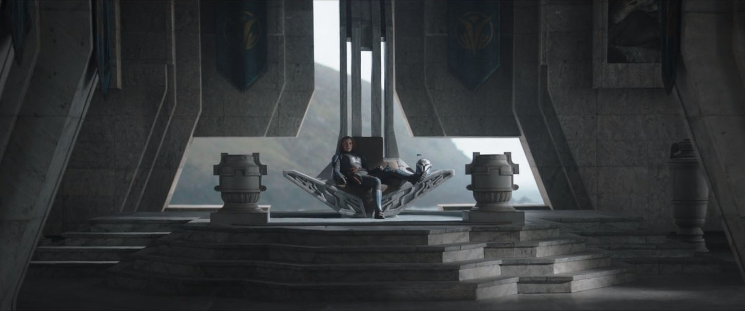 The sight of Bo-Katan Kryze lounging on her throne has sparked its fair share of jokes and memes, but I actually liked this frame quite a lot. As a former photographer, I’ve always appreciated when a single image could convey a story. This shot definitely checked that box, as it perfectly summed up Bo-Katan’s character arc up to this point.