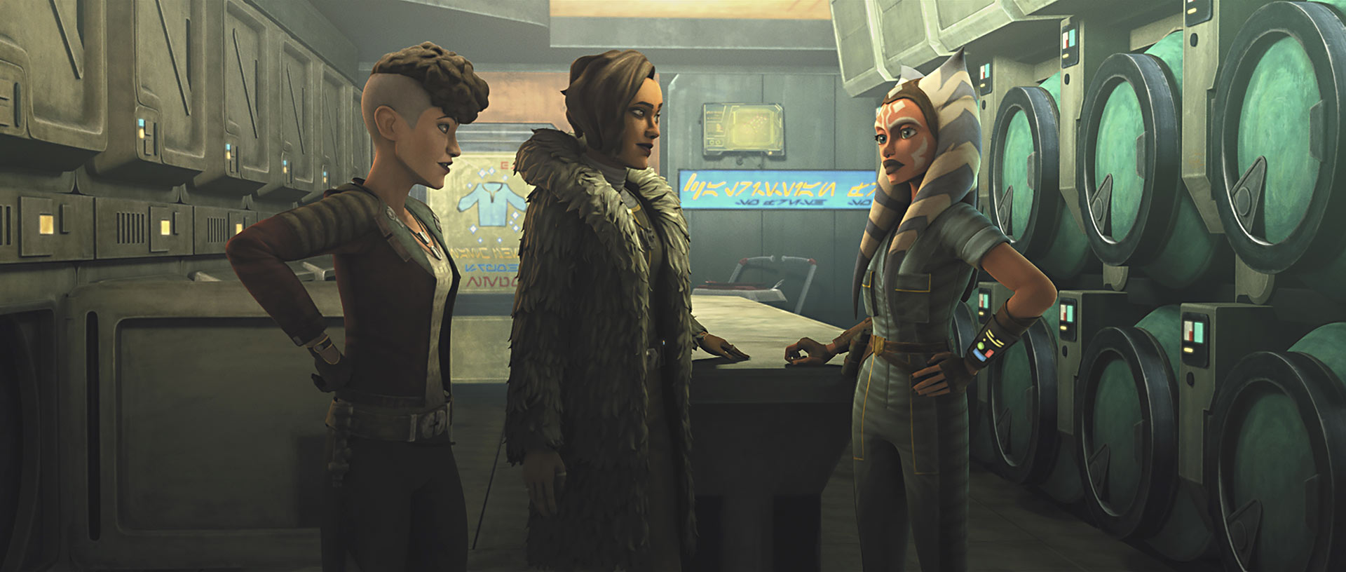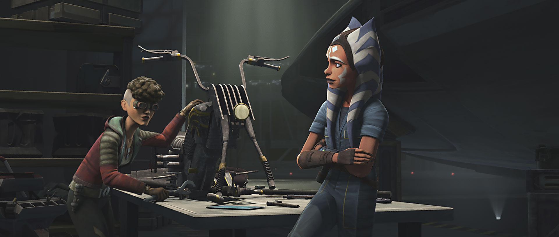 After leaving the Jedi Order, Ahsoka Tano finds herself in the underworld of Coruscant where she befriends aspiring pilot Trace Martez. Enlisted by Trace’s sister Rafa to help build dangerous droids, Ahsoka opts to keep her Jedi past a secret in “Gone With a Trace,” an all-new episode of “Star Wars: The Clone Wars” this Friday, March 20th on Disney+.