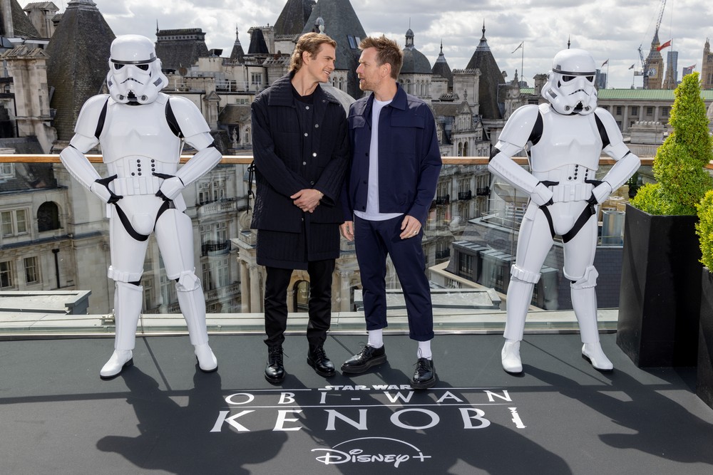 LONDON, ENGLAND – MAY 12: (L-R) Hayden Christensenand Ewan McGregor attend the photocall for the new Disney+ limited series “Obi Wan Kenobi” at the Corinthia Hotel on May 12, 2022 in London, England. (Photo by Gareth Cattermole/Getty Images for Disney) Obi-Wan Kenobi will be exclusively available on Disney+ from May 27.