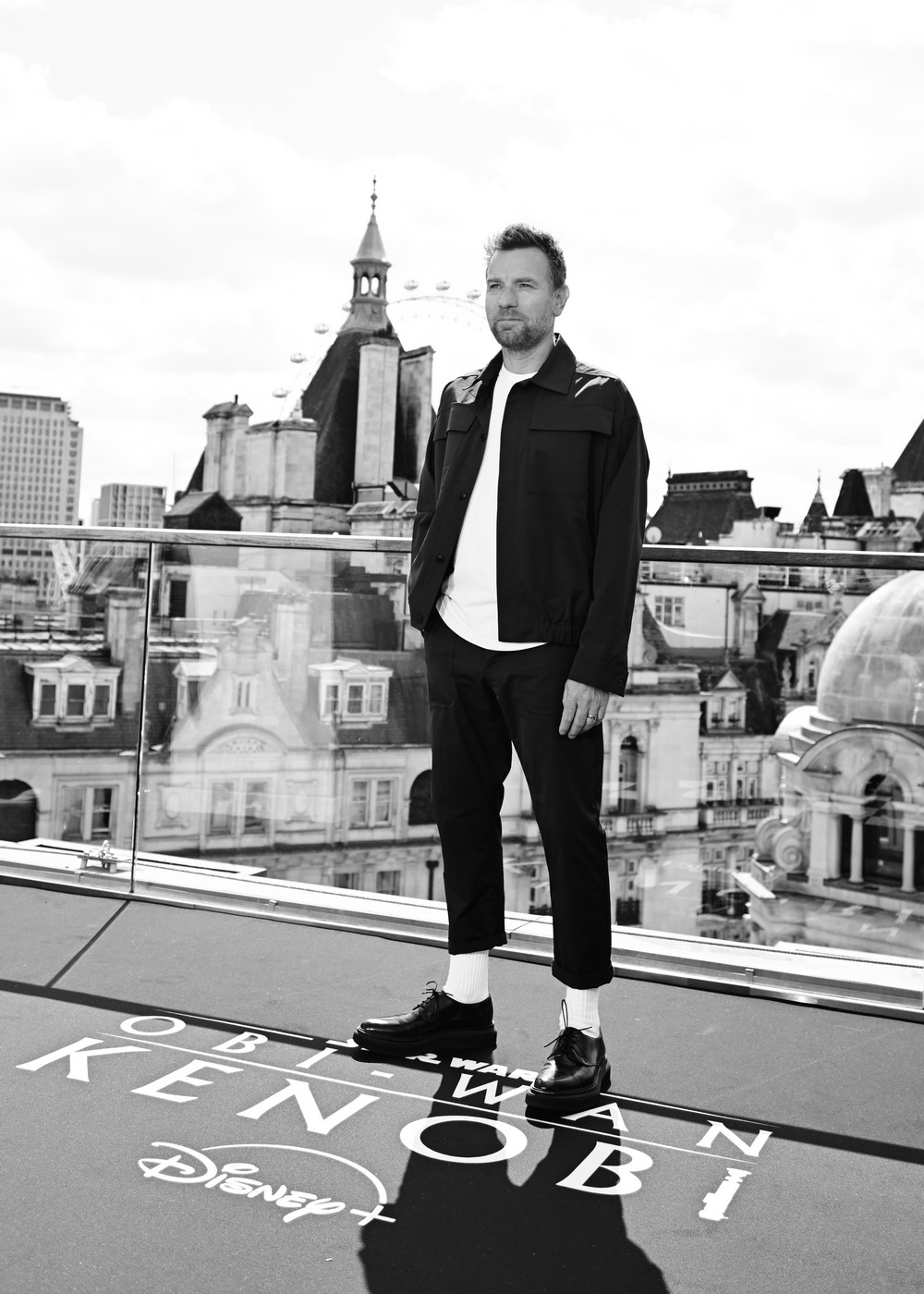 LONDON, ENGLAND – MAY 12: (EDITORS NOTE: Image has been converted to black and white) Ewan McGregor attends the photocall for the new Disney+ limited series “Obi Wan Kenobi” at the Corinthia Hotel on May 12, 2022 in London, England. (Photo by Gareth Cattermole/Getty Images for Disney) Obi-Wan Kenobi will be exclusively available on Disney+ from May 27.