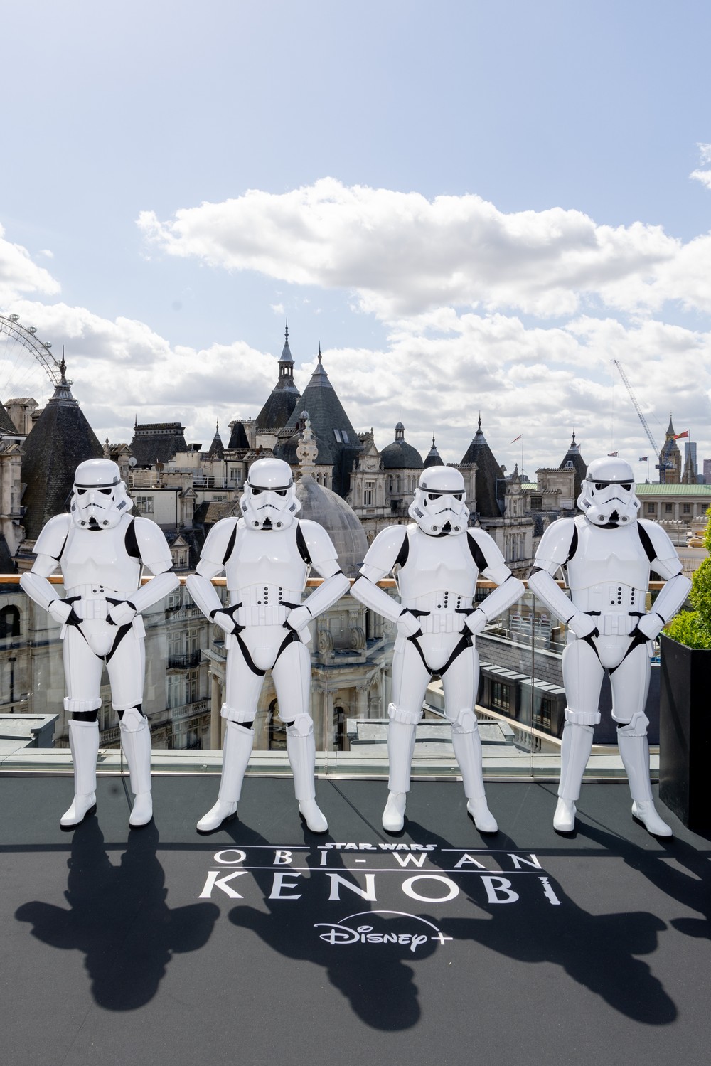 LONDON, ENGLAND – MAY 12: Storm Troopers at the photocall for the new Disney+ limited series “Obi Wan Kenobi” at the Corinthia Hotel on May 12, 2022 in London, England. Obi-Wan Kenobi will be exclusively available on Disney+ from May 27. (Photo by StillMoving.net for Disney)