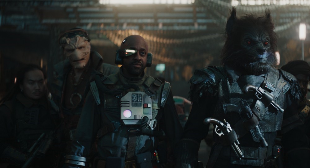 (L-R, second from left): Vane (Marti Matulis), Gunter (Jaleel White), Brutus (Frank Tatasciore, performance artist: Stephan Oyoung), Pax (performance artist: Mike Estes), and Chaelt (Dale Soules) in Lucasfilm’s SKELETON CREW, exclusively on Disney+. ©2024 Lucasfilm Ltd. & TM. All Rights Reserved.
