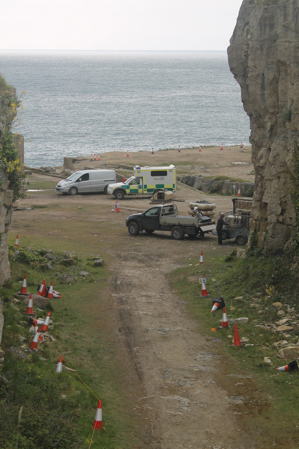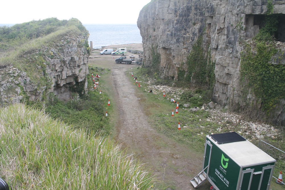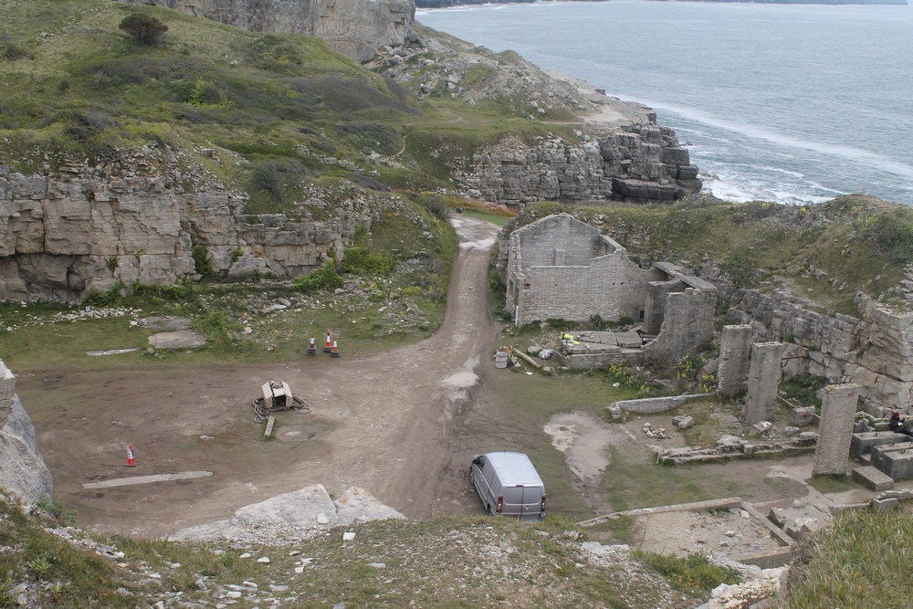 I found the location but sadly filming had finished yesterday and the crew were in the process of dismantling the sets – but there were still some interesting pieces of set dressing around, and I had a quick chat with some of the crew members. I couldn’t get into the location itself but there were plenty of vantage points for photographs on the path round the top of the quarry.
