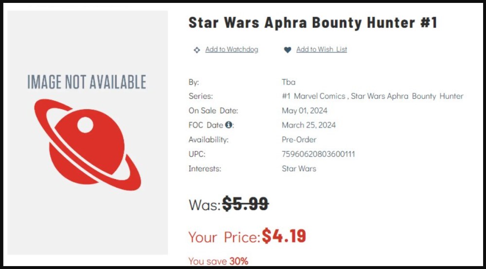Also this ad for “Star Wars Aphra Bounty Hunter #1” was sadly a typo. No such book exists, but it could…