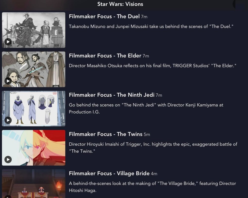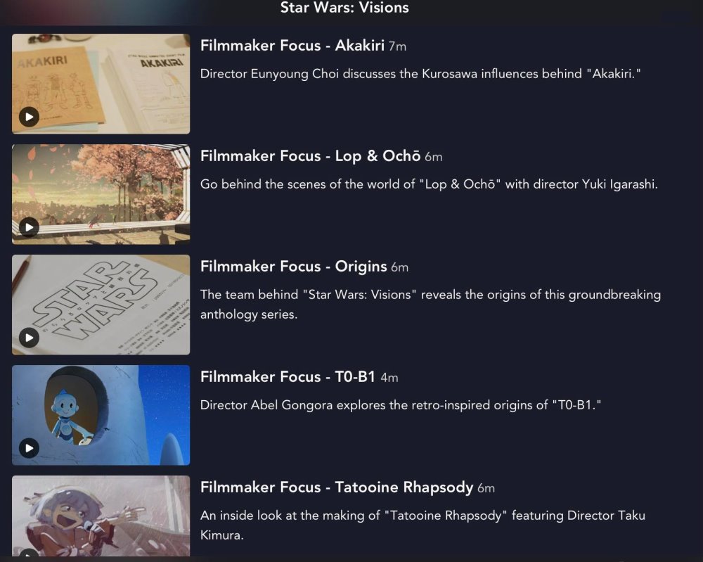While you are watching and marveling at the new worlds and characters of Star Wars: Visions – we’ve posted two reviews so far with team reviews and Making Tracks chats to follow – you should head for the extras and watch the 10 Filmmaker Focus episodes, 9 of which focus on the individual episodes and Origins, which looks at how the show came together.