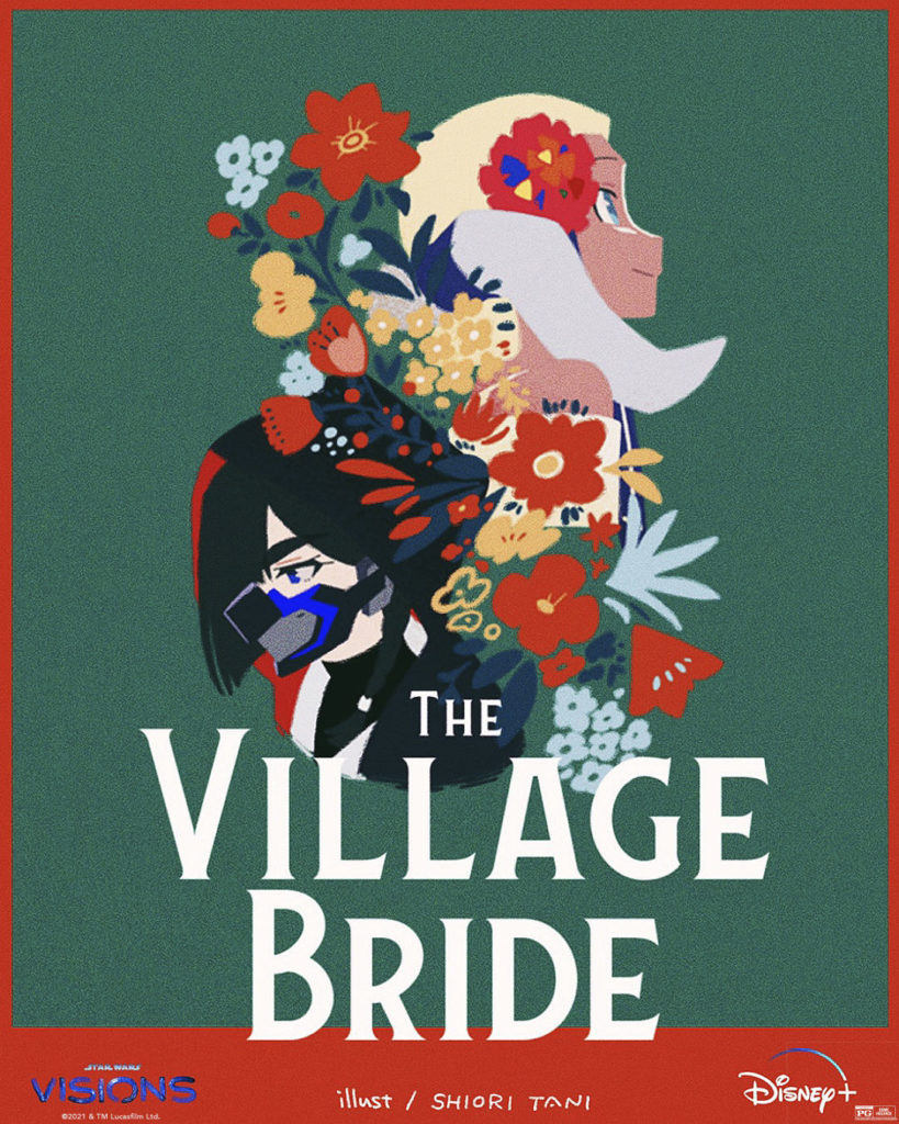 “This beautiful poster captures two strong characters, F the Jedi and Haru the bride. They are like yin and yang but share a similar strength — standing up to protect those who are in a desperate situation. The illustration is by Shiori Tani, the character designer and animation director of ‘The Village Bride.’”
