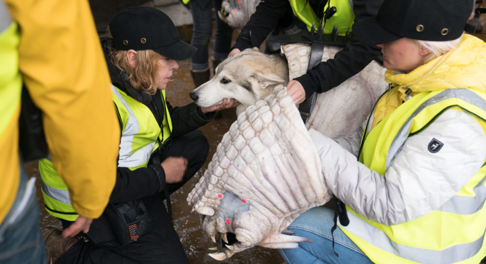 “The Corellian hounds were played by real dogs: two Dobermans named Blackie and Boyce and two Northern Inuits called Saxon and Elsa. They wore specially-fabricated net suits with muscle structures under foam latex. These costumes were fabricated in exactly the same way as that of a human performer, and the process of developing these creatures took over six months. Great care and attention was taken to develop a suit that would be comfortable for the animals to wear and give them the freedom of movement needed to perform in. They had a wide field of vision and ample breathing room. You can tell how much they enjoyed their role by how fast they take off when Moloch sends them after Han and Qi’Ra! They were quite a sight at full speed. ILM did digital work on their faces. These dogs are no strangers to the spotlight. Blackie has appeared in Hugo and Saxon and Elsa have played Dire Wolves in Game of Thrones.