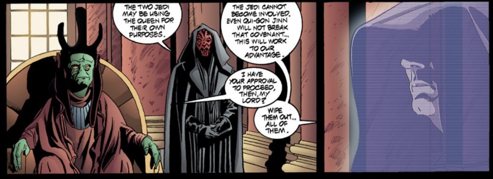 Darth Maul: I feel there is more to this, My Master. The two Jedi may be using the Queen for their own purposes.