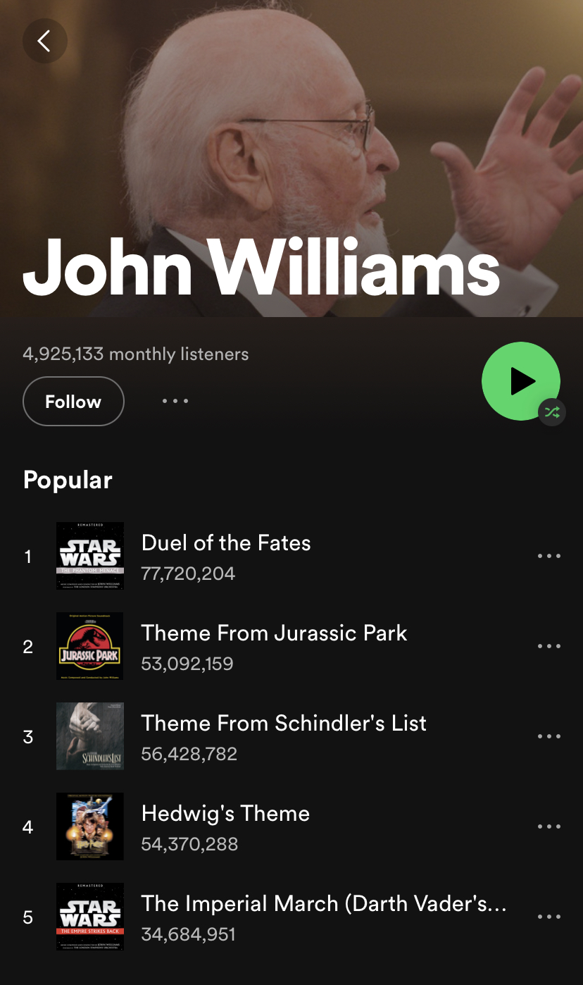 77 million listens on Spotify, incredible numbers for The Phantom Menace‘s most recognisable track. With Jurassic World: Dominion out next month, expect the Jurassic Park theme to get some additional love over the coming months.